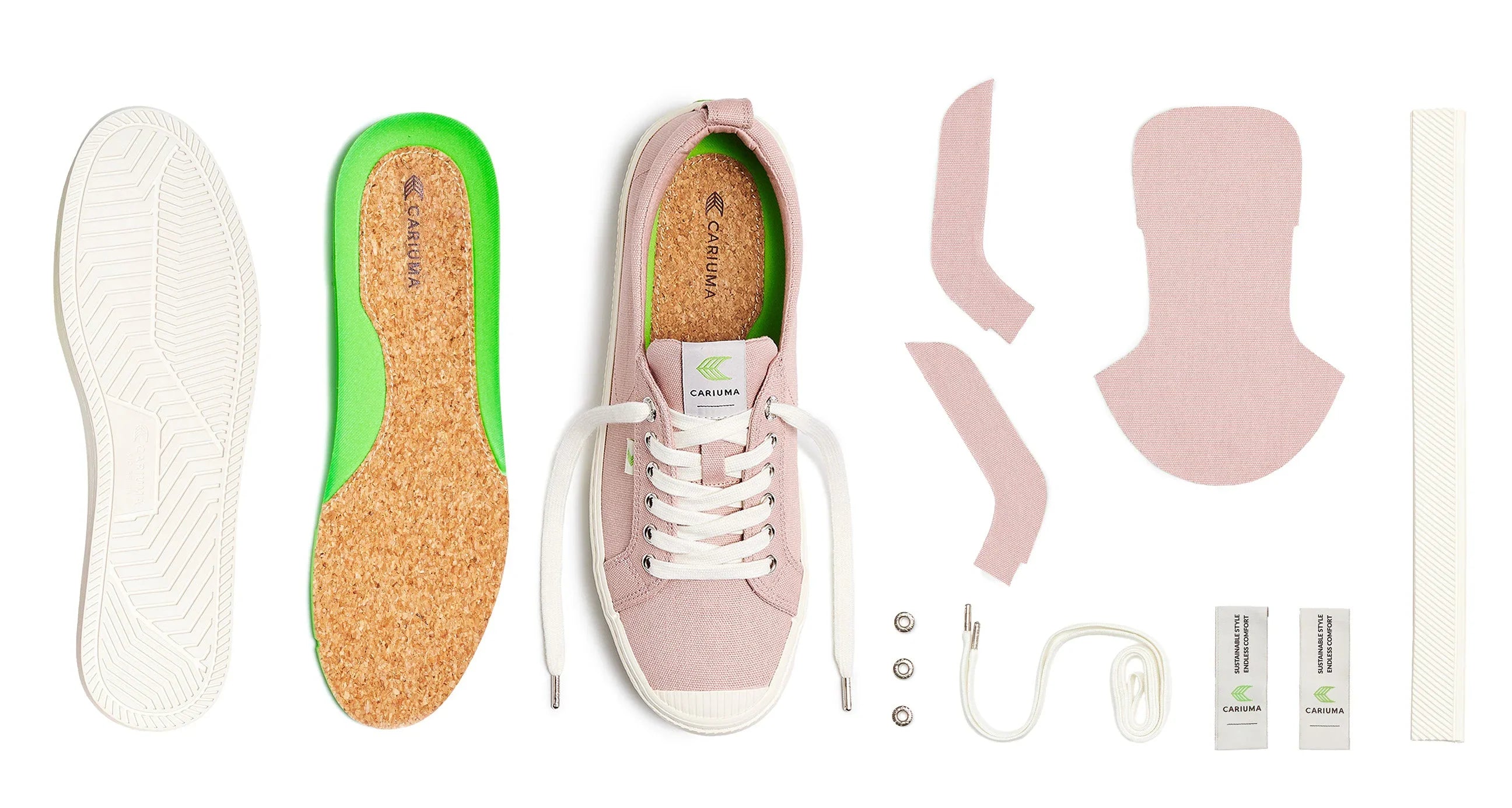 ● 鞋面:有機棉帆布製成● 內襯:有機棉帆布● 鞋底:防滑橡膠● 鞋墊:軟木搭配可再生蓖麻油製成的生物基泡棉● 鞋帶:由再生聚酯纖維(rPET)與有機棉混紡製成,搭配壓印金屬鞋帶頭● 結構設計:硫化鞋結構,鞋底採全縫線設計