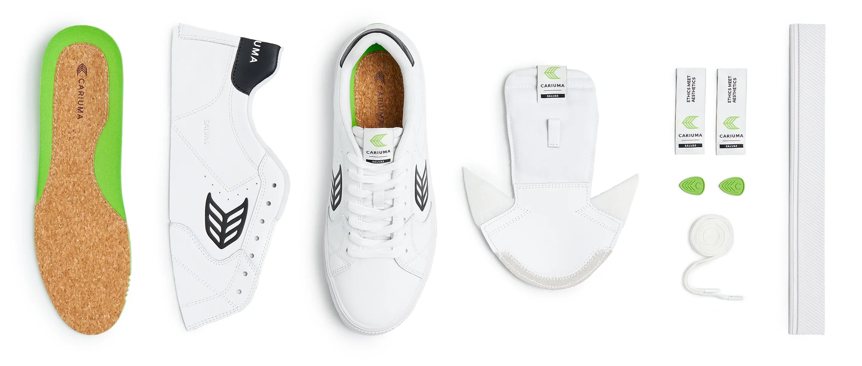 ● 鞋面:採用來自 LWG 金級認證製革廠的高級皮革製成● 內襯:再生網布材質● 鞋底:防滑橡膠● 鞋墊:軟木搭配可再生蓖麻油製成的生物基泡棉● 鞋帶:由再生聚酯纖維(rPET)與有機棉混紡製成,搭配壓印金屬鞋帶頭● 結構設計:硫化鞋結構,鞋底採全縫線設計