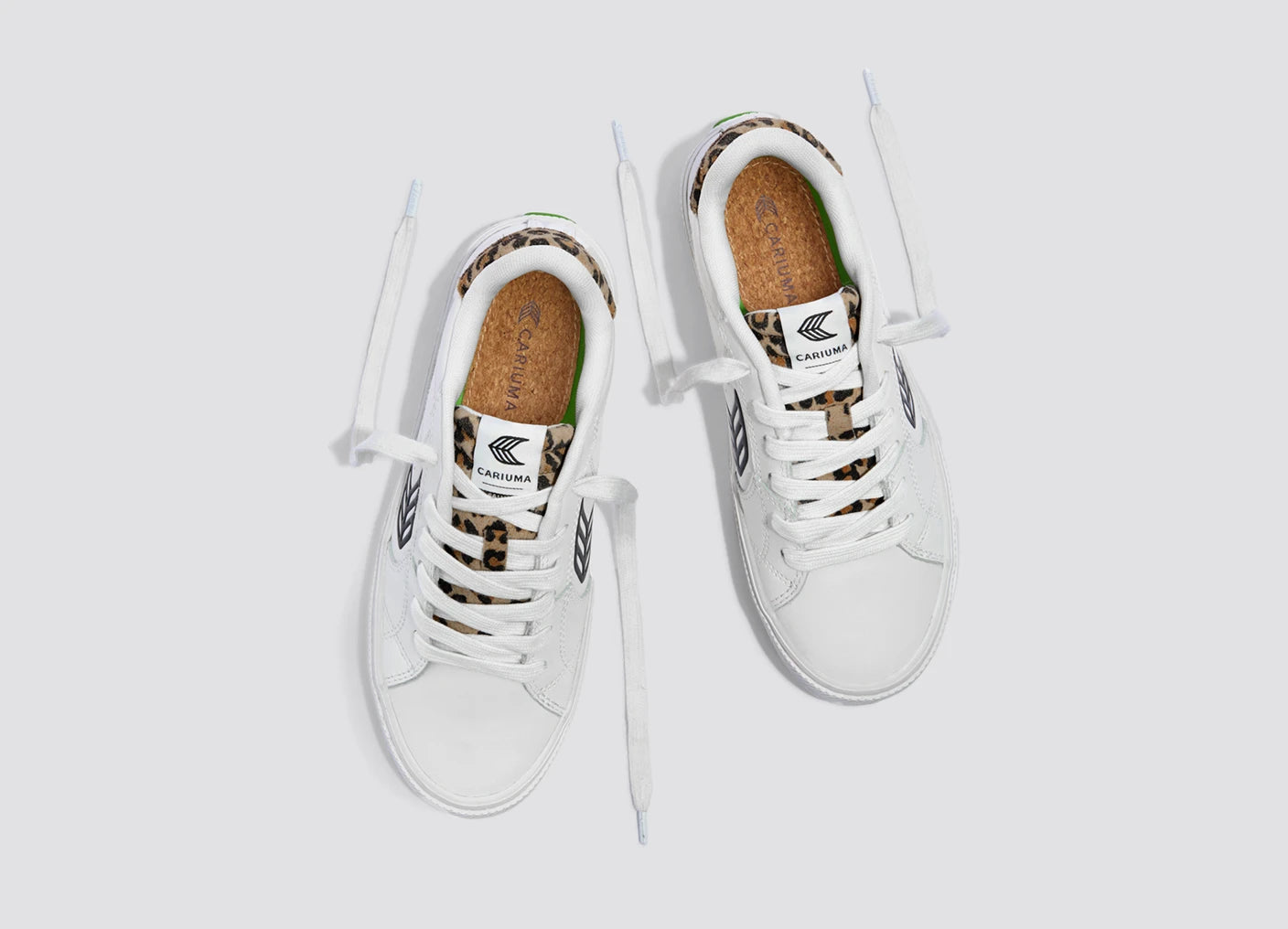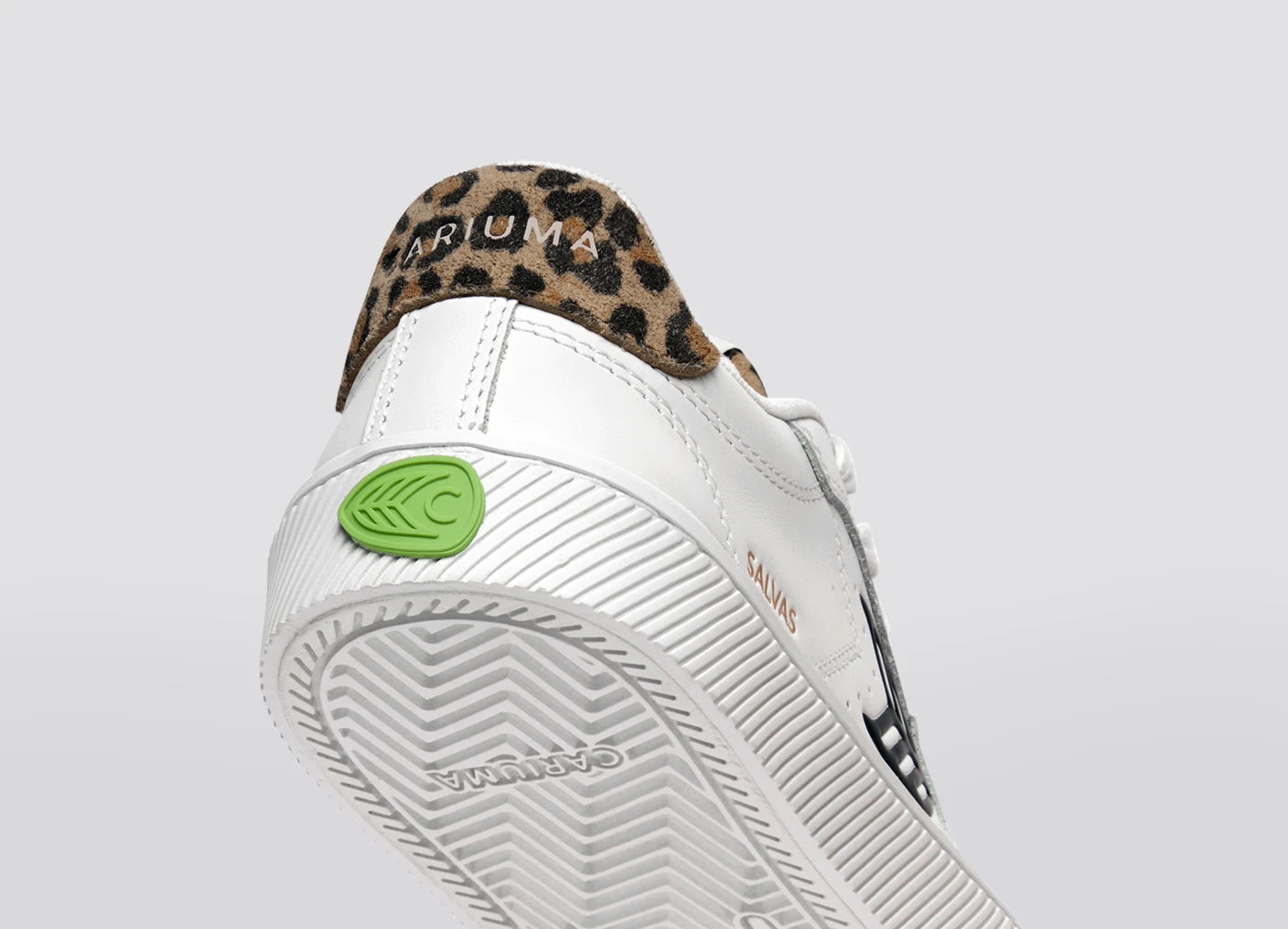 選購 SALVAS 經典 皮革運動鞋 白色 豹紋