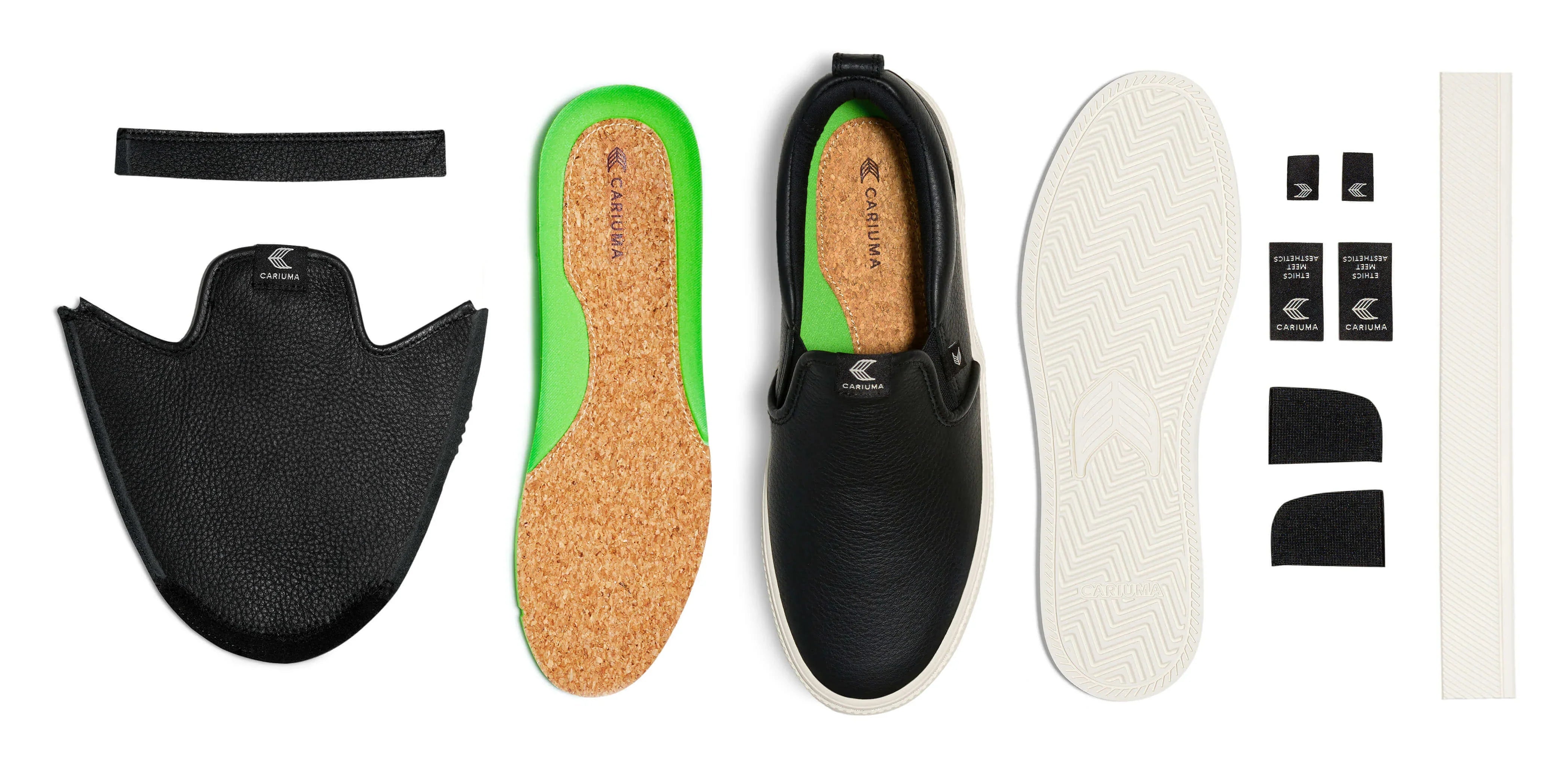 ● 鞋面:採用來自 LWG 金級認證製革廠的高級荔枝紋皮革製成● 內襯:有機棉帆布● 鞋底:防滑橡膠● 鞋墊:軟木搭配可再生蓖麻油製成的生物基泡棉● 結構設計:硫化鞋結構,鞋底採全縫線設計